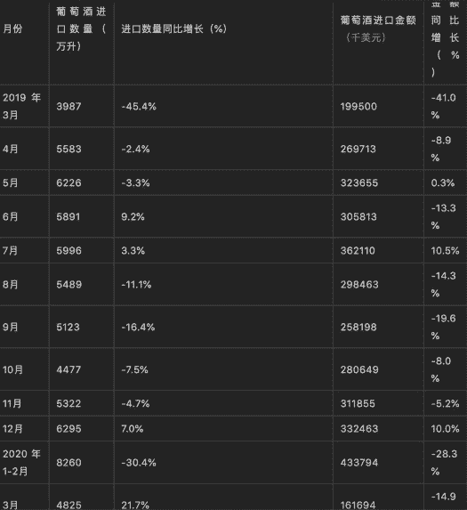 据华经产业研究院数据显示:2020年1-3月中国葡萄酒进口数量为13084万升,相比上年同期减少了2778 2万升,降幅为17 4%;进口金